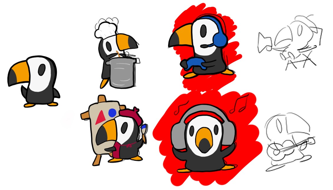 Toucannor is the mascot for this website. I wanted a mascot to hide my identity and to display some art all over this site. With a mascot, I can draw him in different poses and doing different activities. Toucans are my favorite animal, but I also concidered doing an aligator.